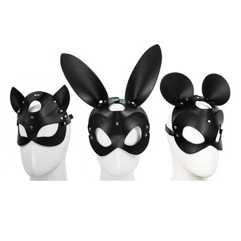 Kedi tavşan Mickey Mouse Cosplay başlık BDSM headmask Hood fetiş kafa esaret köle Restraint seksi kostüm oyuncaklar